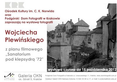 „Sanatorium Pod Klepsydrą” to dzieło zapisane w polskiej twórczości zarówno słowem jak i obrazem. Niezwykła poetycka proza Bruno Schulza, w 1972 roku została podjęta przez Wojciecha Hasa w jego filmowej interpretacji. To wtedy w starym krakowskim kamieniołomie na Krzemionkach wzniesiono ‘schulzowskie’ miasto, nad którym górowało tytułowe Sanatorium Pod Klepsydrą. Na planie zdjęciowym filmu, obok wielkich znakomitości polskiego kina, Gustawa Holoubka, Jerzego Treli, pojawił się ze swym Pentaconem Wojciech Plewiński.