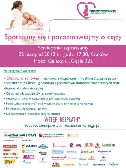 Ogólnopolska akcja społeczno-medialna „Diagnostyka dla Twojej ciąży” to projekt skierowany do wszystkich przyszłych mam. Ma na celu uświadomienie, jak ważne są badania diagnostyczne zarówno dla kobiety, jak i dla dziecka, na każdym etapie jego rozwoju. Podczas listopadowego spotkania w Krakowie odbędą się rozmowy z wybitnymi specjalistami: