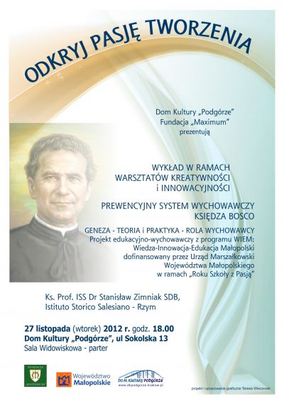 | WYKŁAD OTWARTY "PREWENCYJNY SYSTEM WYCHOWAWCZY KSIĘDZA BOSCO" W RAMACH WARSZTATÓW KREATYWNOŚCI I INNOWACYJNOŚCI "ODKRYJ PASJĘ TWORZENIA" |