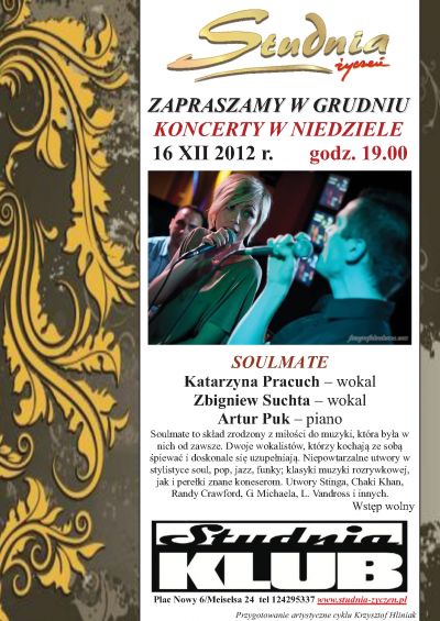 Soulmate to skład zrodzony z miłości do muzyki, która była w nich od zawsze. Dwoje wokalistów, którzy kochają ze sobą śpiewać i doskonale się uzupełniają. Niepowtarzalne utwory w stylistyce soul, pop, jazz, funky; klasyki muzyki rozrywkowej,,,