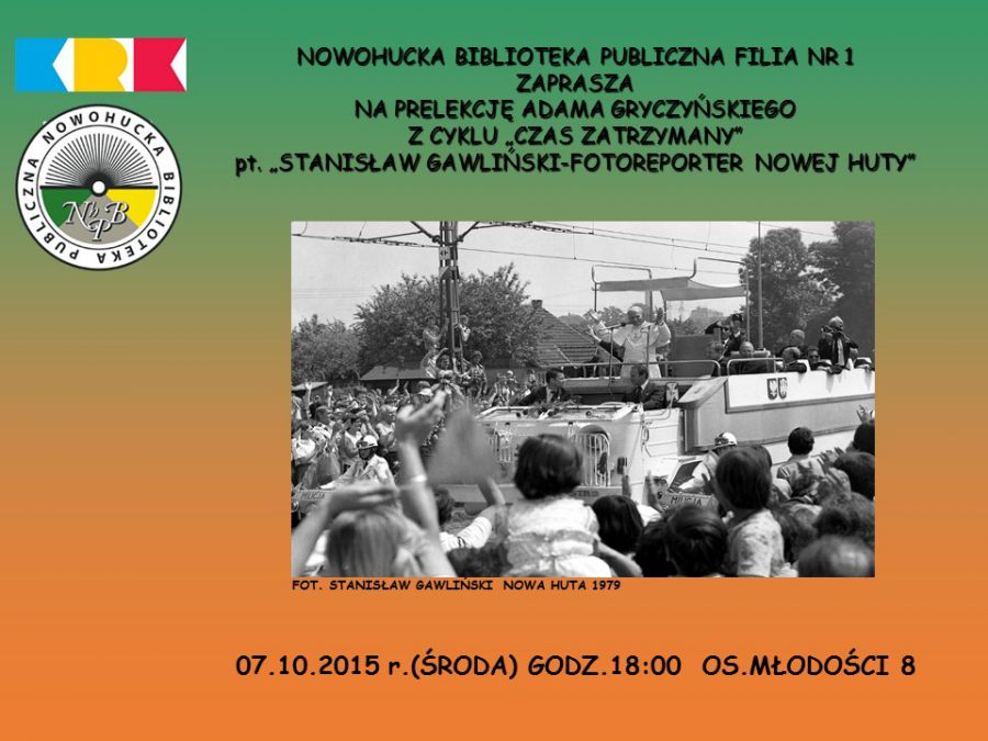 „Stanisław Gawliński fotoreporter Nowej Huty” - prelekcja Adama Gryczyńskiego z cyklu „Czas zatrzymany”.