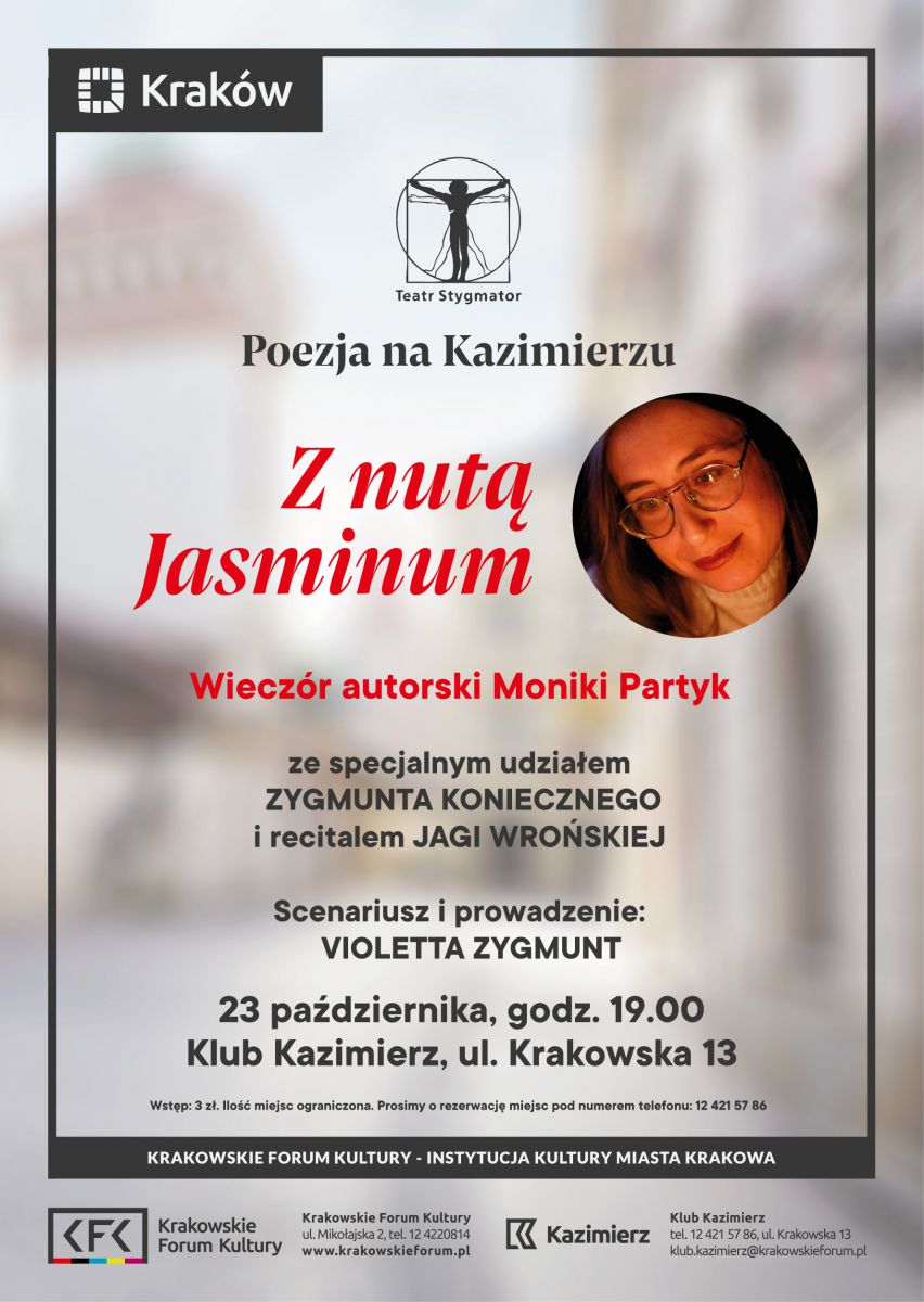"Z nutą Jasminum" wieczór autorski Moniki Partyk. Uwaga program przeniesiony na 2021 rok. !!!