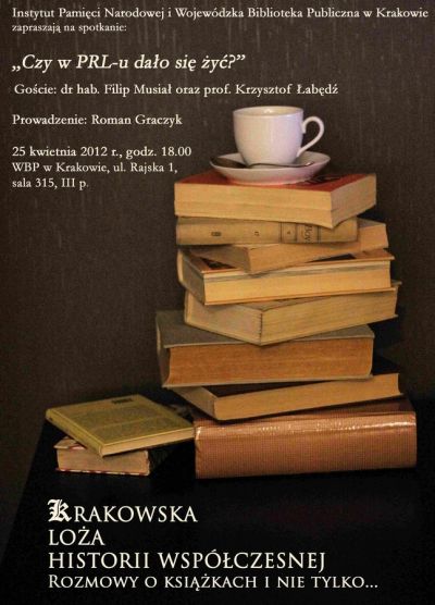 Spotkanie z cyklu „Krakowska Loża Historii Współczesnej. Rozmowy o książkach i nie tylko…” – „Czy w PRL-u dało się żyć?”