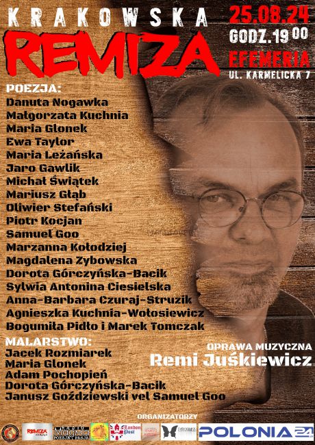 Wieczór muzyczno-poetycko-malarski artystów polskich tworzących w kraju i na emigracji skupionych wokół "Remizy", czyli audycji muzyczno-kulturalnej z Londynu, którą z powodzeniem od kilku lat prowadzi Remi Juśkiewicz - półfinalista The Voice Senior 2024 oraz