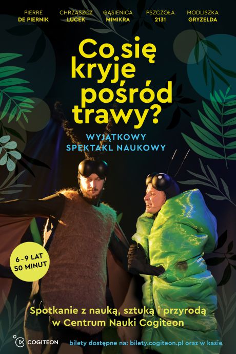 Małopolskie Centrum Nauki Cogiteon zaprasza na wyjątkowy spektakl naukowy „Co się kryje pośród trawy?”. Lucek, główny bohater przełamuje strach i mimo, że zwykle porusza się nocą, postanawia wybrać się na łąkę w ciągu dnia. Wszystko po to, żeby dowiedzieć się jak wygląda świat kwiatów i przyrody w pełnym słońcu.