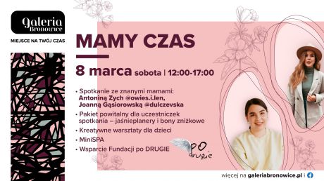 Wydarzenie „Mamy czas” w Galerii Bronowice odbędzie się w sobotę, 8 marca, w godz. 12:00-17:00.