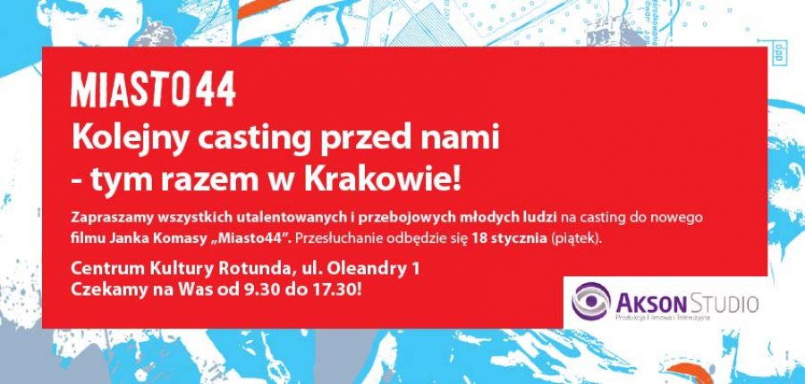 18 stycznia odbędzie się kolejny casting do filmu Miasto 44 w reżyserii Jana Komasy. Młodzi mieszkańcy Krakowa majš szansę na wzięcie udziału