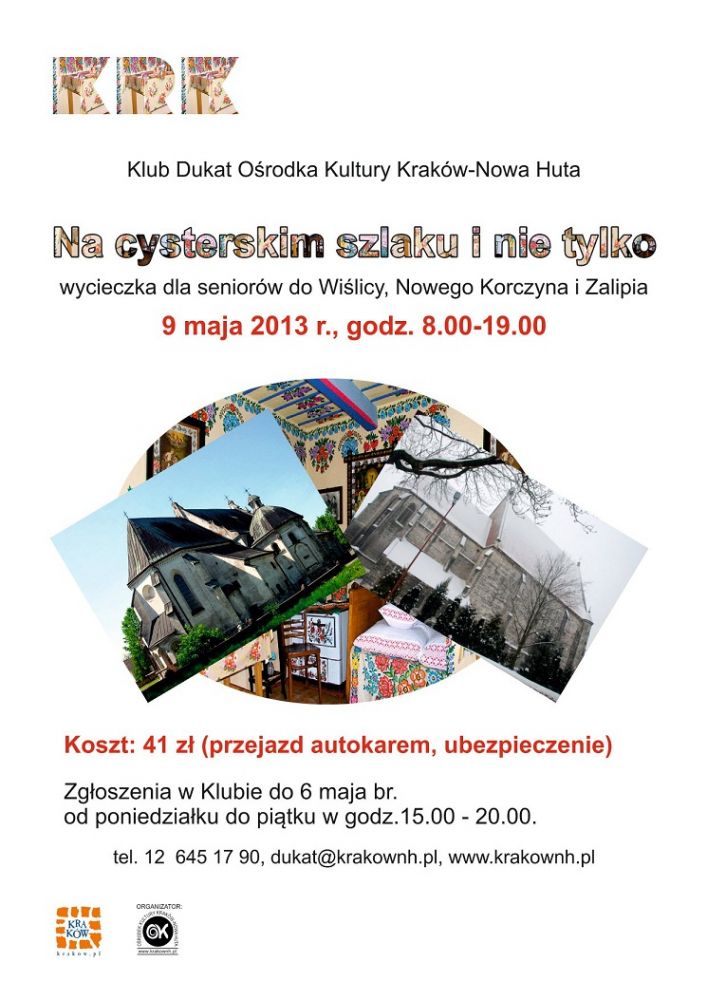 Zgoszenia do 6 maja w Klubie Dukat Orodka Kultury Krakw-Nowa Huta od poniedziaku do pitku w godz. 15.00-20.00. Koszt: 41 z (w tym przejazd autokarem, opieka i ubezpieczenie).