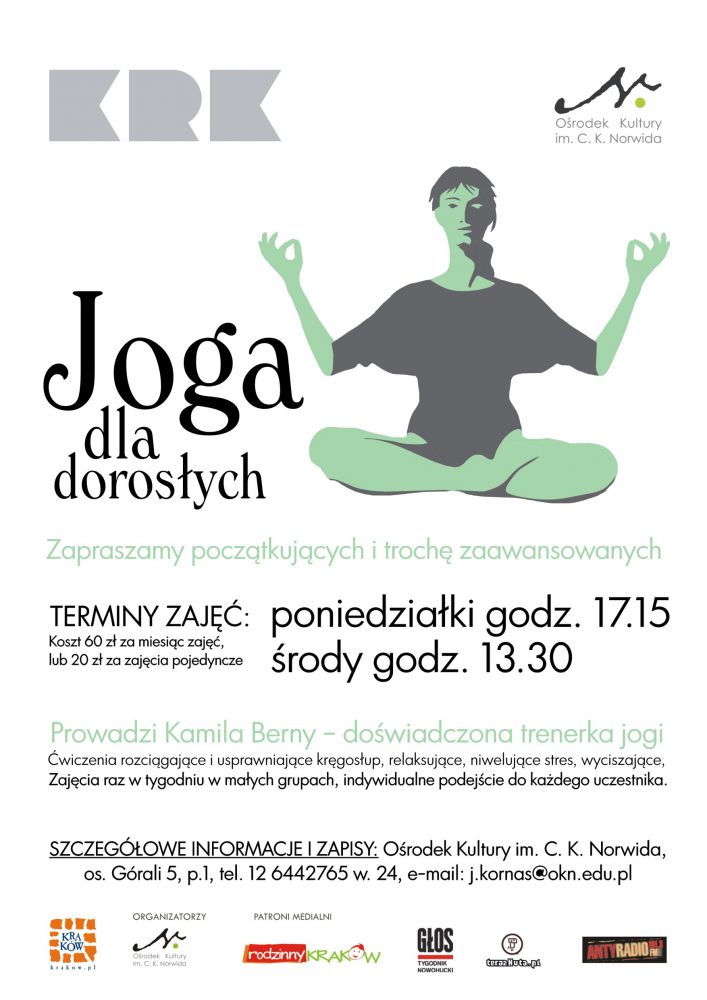 Zapraszamy na zajęcia jogi dla poczštkujšcych i trochę zaawansowanych. Proponujemy ćwiczenia rozcišgajšce i usprawniajšce kręgosłup, relaksujšce, niwelujšce stres, wyciszajšce. Regularne ćwiczenia pomagajš zachować zdrowie i wewnętrznš harmonię.