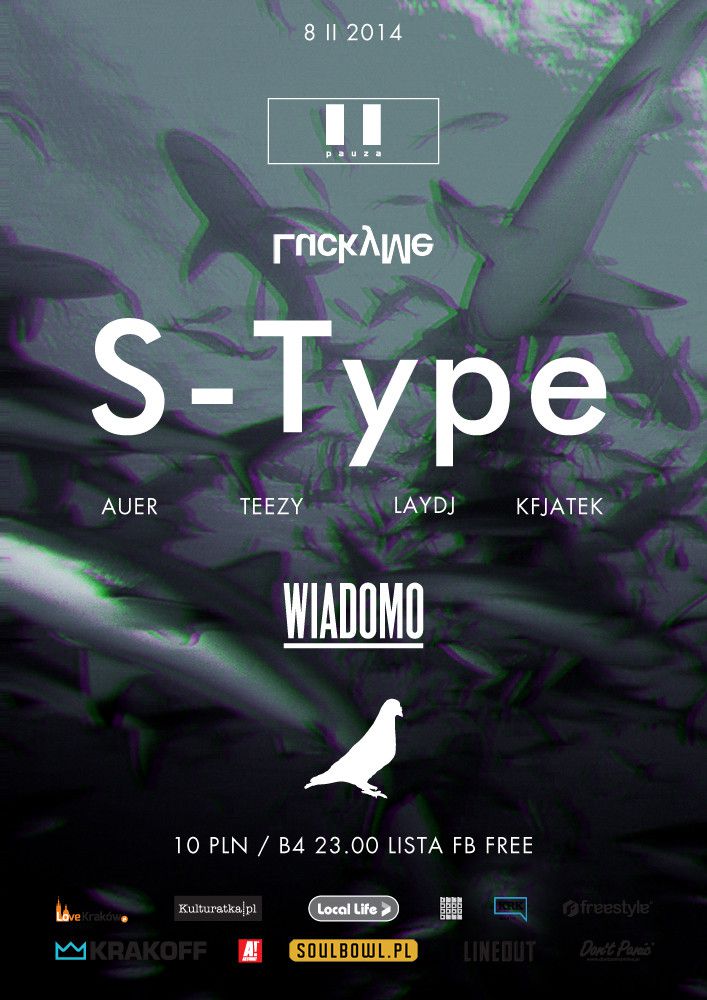Klub Pauza, WIADOMO oraz Pigeon Promotions, zapraszajš Was na imprezę, której głównš gwiazdš będzie S-Type z legendarnej wytwórni LuckyMe. Lokalni bohaterowie zapewniš dobry akompaniament do występu młodego Edynburczyka.