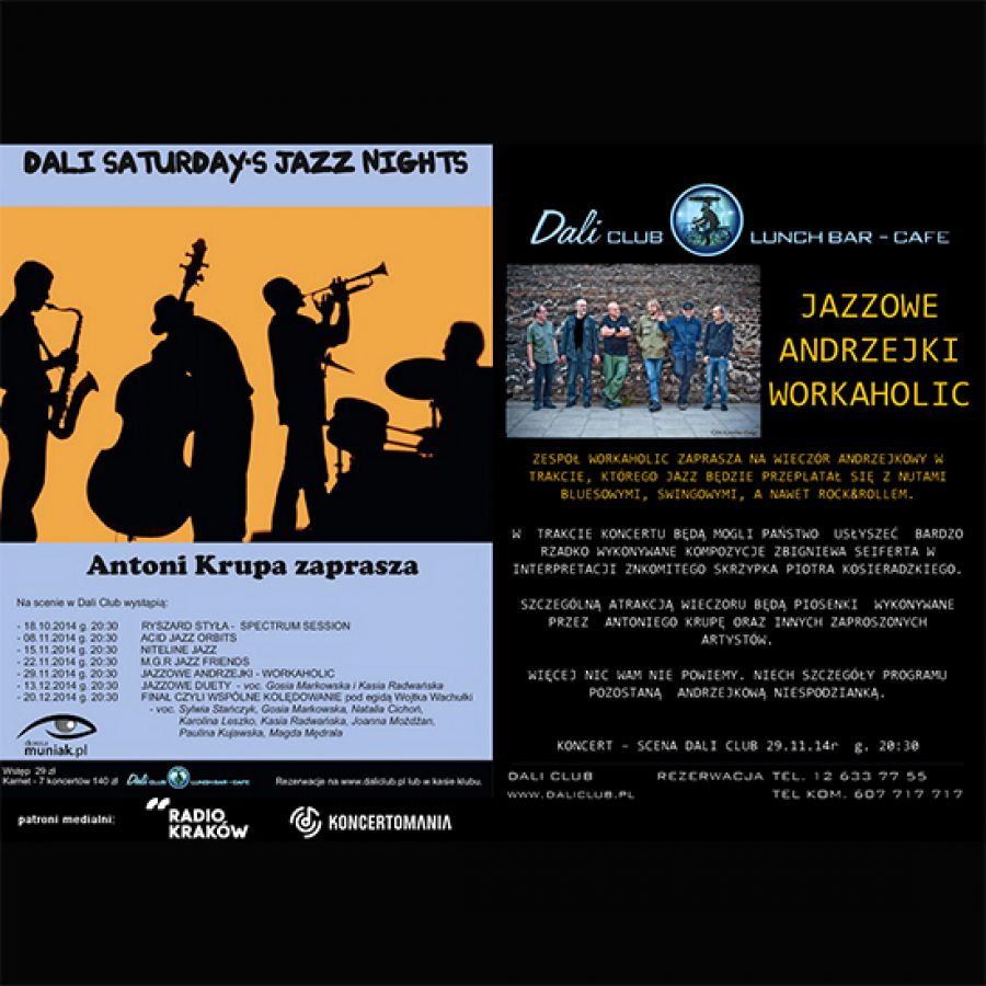 Serdecznie zapraszamy na andrzejkowy koncert, który jest kontynuacja cyklu Dali Saturdays Jazz Nights.