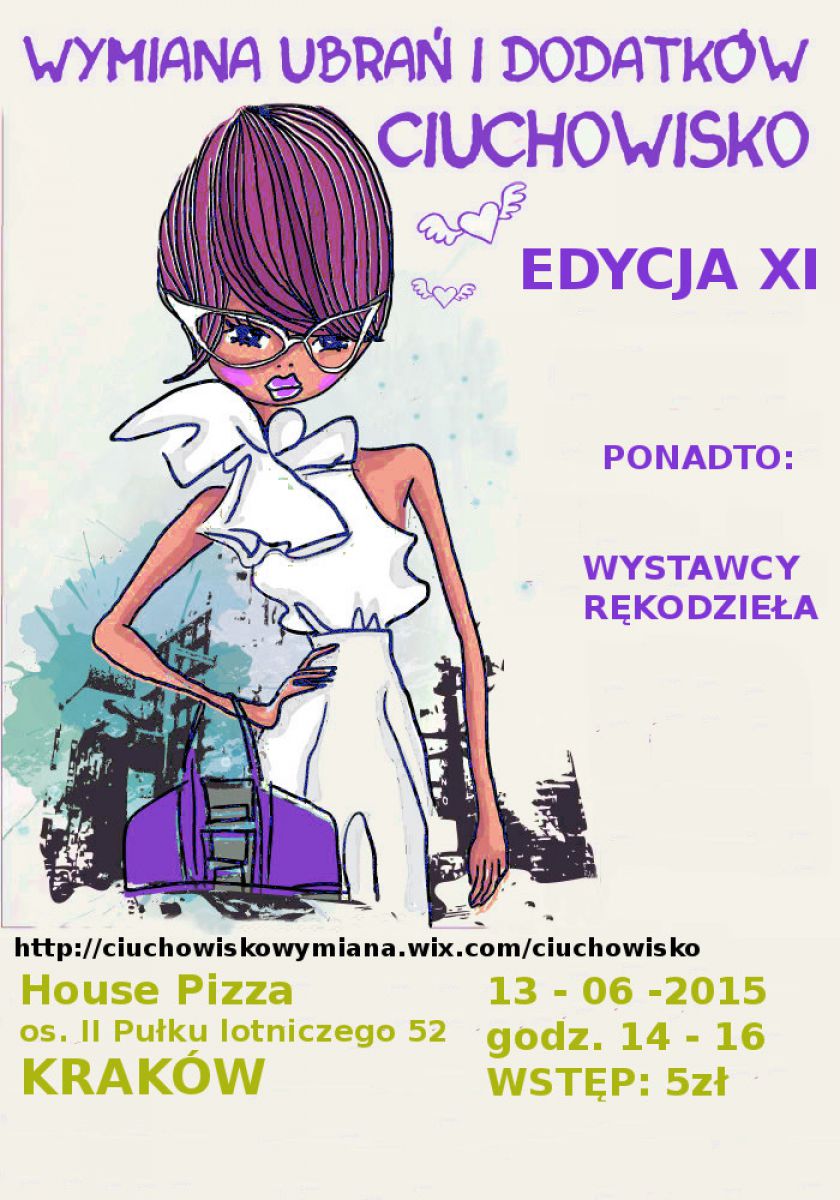 Kolejna edycja szalonej wymiany ubrań i dodatków czyli Krakowskiego Ciuchowiska. Ponownie spotykamy się w House Pizza os. II Pułku Lotniczego 51. Na miejscu barek z piciem i jedzonkiem:) Jeœli pogoda dopisze to wymianę zrobiby na ogródku :D