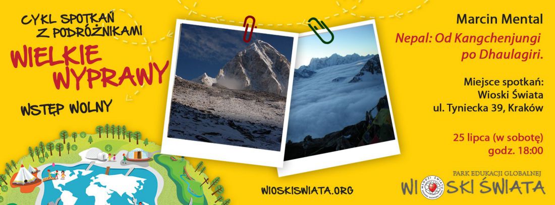 Już w najbliższš sobotę 25. lipca zapraszamy o godzinie 18:00 do Wiosek Œwiata przy ulicy Tynieckiej 39 w Krakowie na pokaz dotyczšcy przekroju przez 17 wypraw do Nepalu. Poczynajšc od treku do bazy pod Everestem w 2007 roku do zamieszkania i pracy z nepalskš rodzinš przez kilka miesięcy w 2008 roku, a także prowadzenia zorganizowanych wspinaczek po dzień dzisiejszy w Himalajach.