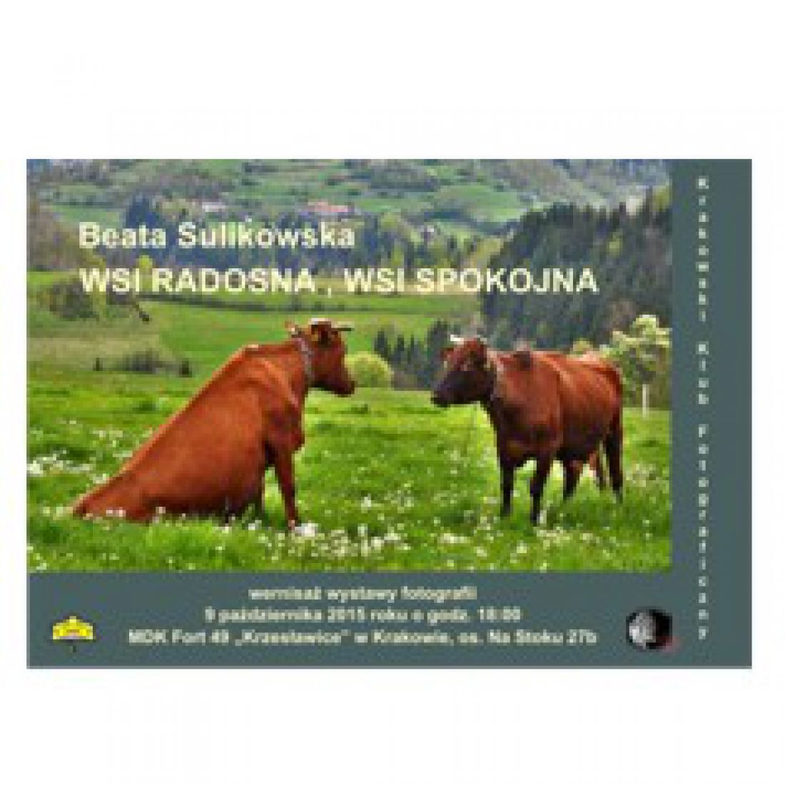 Wystawę fotograficznš Beaty Sulikowskiej Wsi radosna, wsi spokojna można oglšdać do 12 listopada 2015 roku w Młodzieżowym Domu Kultury Fort 49 "Krzesławice" w Krakowie.