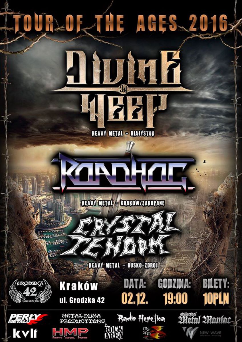Na dzień 2 grudnia zaplanowano w krakowskim klubie Pub "Grodzka 42 Hard Rock Music" koncert będšcy częœciš trasy koncertowej "Tour of the Ages 2016" białostockiego zespołu Divine Weep, który promuje album "Tears of the Ages" wydany na poczštku roku przez amerykańskš wytwórnię Stormspell Records, a następnie przez ukraińskie Metal Scrap Records Inc. (premiera 14 lipca 2016).