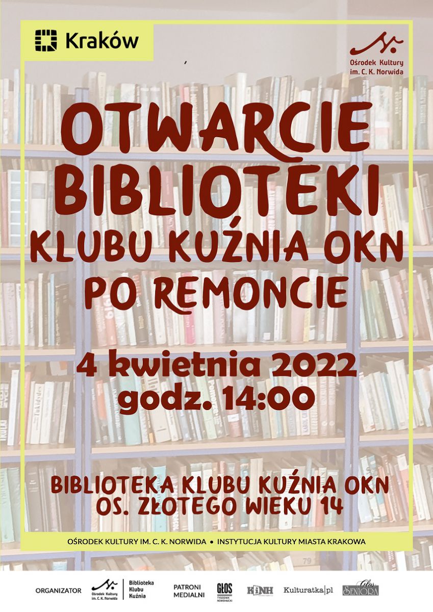 Od listopada 2021 roku Biblioteka Klubu Kunia OKN był nieczynna dla Czytelników ze względu na modernizację, ukierunkowanš na podniesienie jakoci wiadczonych usług bibliotecznych. Od kwietnia br. Czytelnicy będš mogli korzystać z Biblioteki w następujšcych dniach i godzinach: