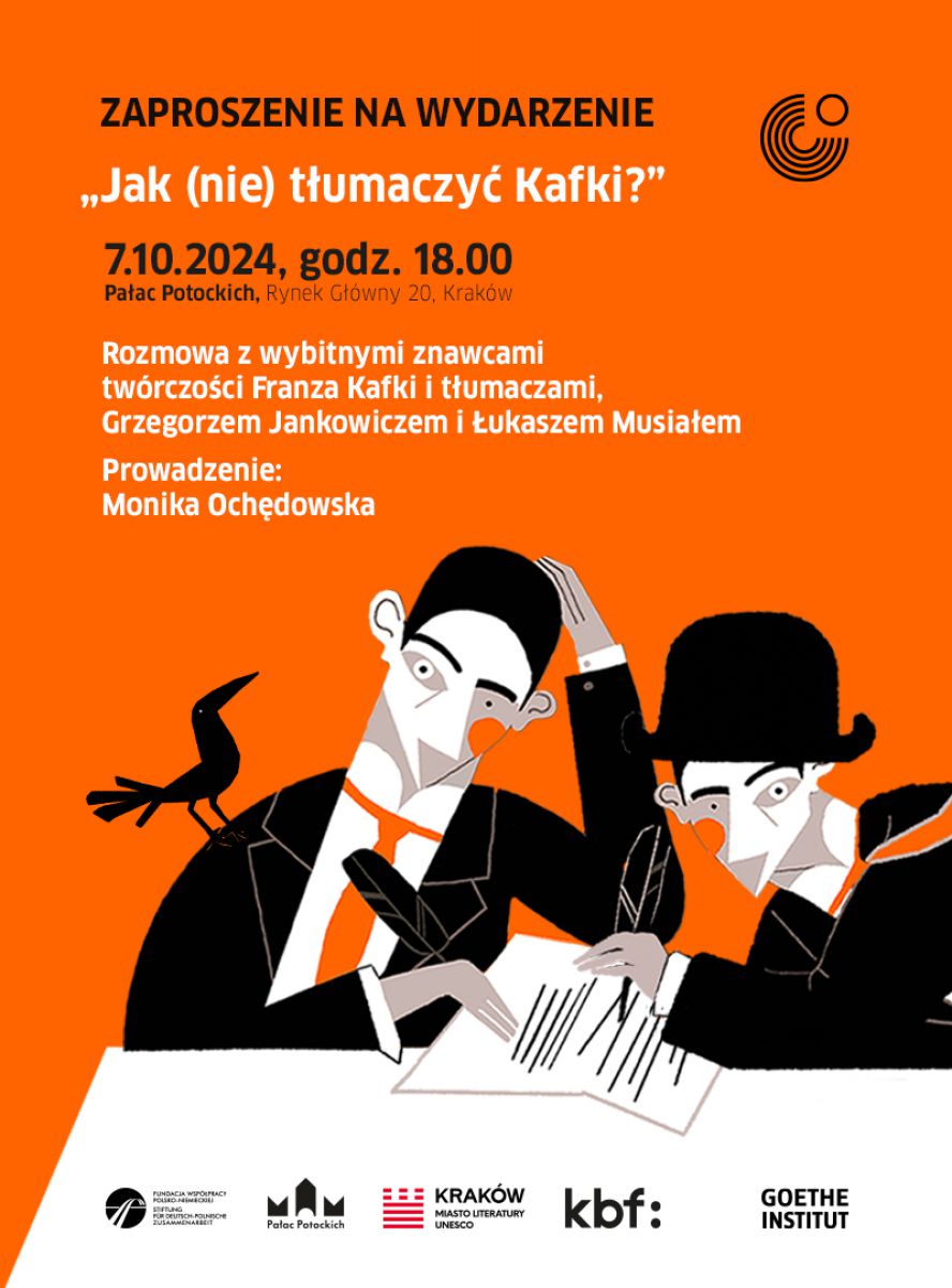 O możliwościach i niemożliwościach przekładu dzieł Kafki na język polski i nowych perspektywach interpretacyjnych porozmawiają znawcy tego autora i tłumacze Grzegorz Jankowicz i Łukasz Musiał. Rozmowę poprowadzi Monika Ochędowska.