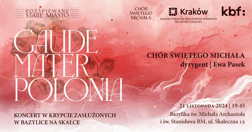 Zapraszamy serdecznie na wyjątkowy koncert Gaude Mater Polonia w wykonaniu Chóru Św. Michała, który odbędzie się w Krypcie Zasłużonych w Bazylice Na Skałce. To niezwykłe wydarzenie, przepełnione duchem polskiej historii i tradycji, przybliży słuchaczom najpiękniejsze utwory dawnych mistrzów.