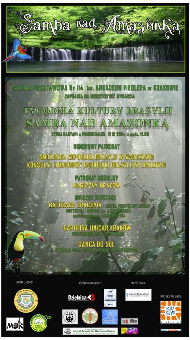 Szkoa Podstawowa nr 114 im. Arkadego Fiedlera w Krakowie zaprasza na uroczysto otwarcia Tygodnia Kultury Brazylii SAMBA NAD AMAZONK, ktra nastpi w poniedziaek 21 listopada 2011r. o godz. 17.00.