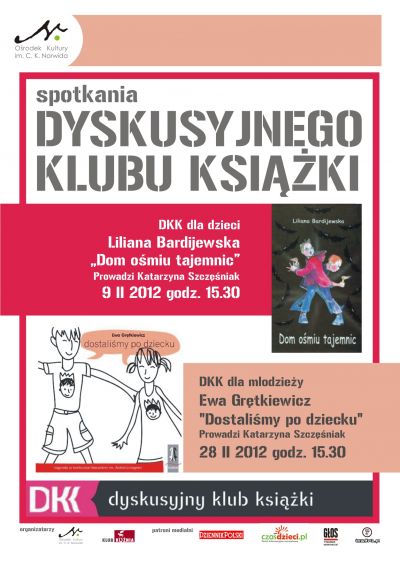 Zapraszamy na otwarte spotkanie dla osób młodych, które lubiš czytać i rozmawiać o ksišżkach. Uczestnikiem Dyskusyjnego Klubu Ksišżki może być każdy. Spotykajšcy się nie muszš prowadzić poważnych dyskusji literackich, ani znać się na literaturze. Najważniejsze jest to, jakie wrażenie wywarła na nich ksišżka.