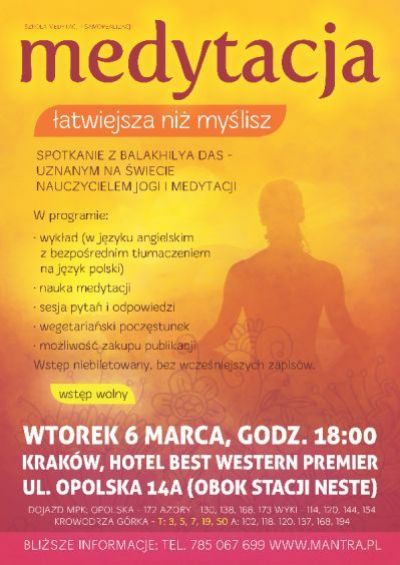 Na zaproszenie Szkoły Medytacji i Samorealizacji przyjedzie do Polski uznany w œwiecie nauczyciel jogi i medytacji Balakhilya das. Przekazywane przez niego nauki sprawdzajš się w każdej kulturze i społecznoœci. Zawierajš w sobie ponadczasowe wartoœci, które pomagajš ludziom osišgnšć harmonię i równowagę w życiu.