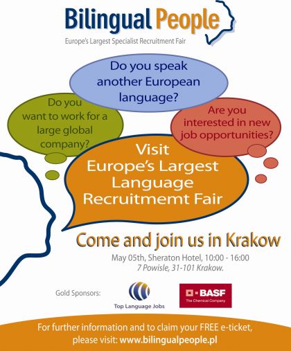 Pierwsza polska edycja Międzynarodowych Targów Pracy Bilingual People odbędzie się 5 maja w Hotelu Sheraton w Krakowie, w godz. 10:00 16:00.