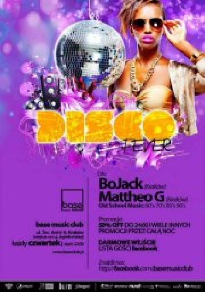 W najbliszy czwartek zapraszamy na cakowicie nowy, jeszcze pachncy wieoci cykl imprezy pt. DISCO FEVER... Najlepsza muzyka spod znaku DISCO serwowana przez dobrze znanych krakowskiej publicznoci: BoJack & Mattheo G. Zapraszamy!