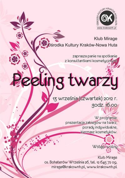 Klub Mirage Orodka Kultury Kraków-Nowa Huta (os. Bohaterów Wrzenia 26) zaprasza na spotkanie z konsultantkami kosmetycznymi, podczas którego zaprezentowane zostanš zabiegi na twarz dla pań w wieku dojrzałym.
