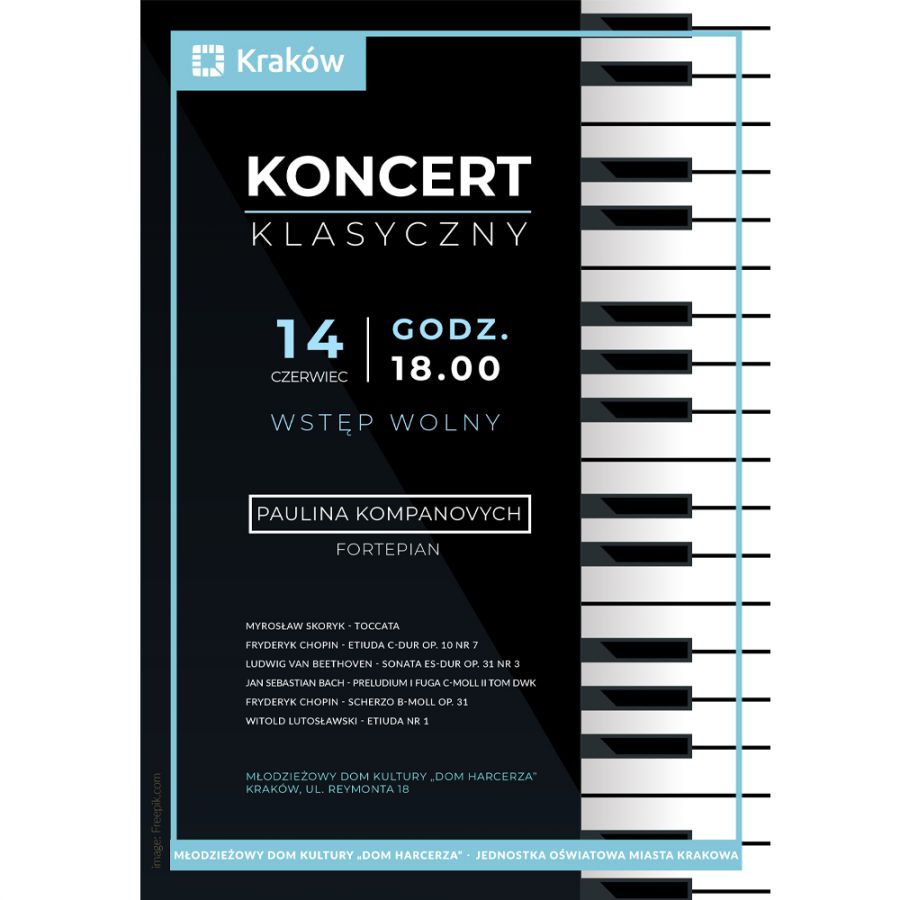 Zapraszamy na koncert muzyki klasycznej do MDK "Dom Harcerza", Reymonta 18.