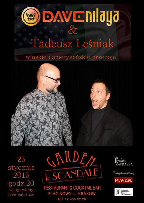 W niedziel 25 stycznia Garden Le Scandale zaprasza na koncert wosko-polskiego duetu Dave Nilaya & Tadeusz Leniak.