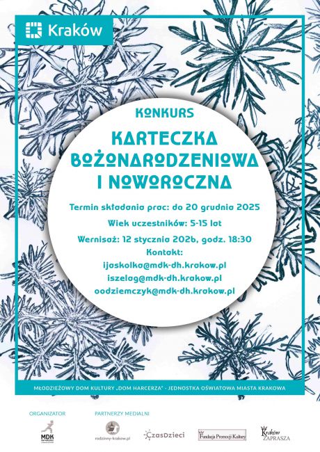 Młodzieżowy Dom Kultury „Dom Harcerza” Reymonta 18 w Krakowie zaprasza dzieci i młodzież w wieku 5–15 lat do udziału w konkursie plastycznym „Karteczka Bożonarodzeniowa i Noworoczna”!