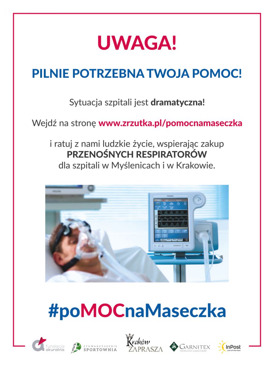 PoMOCnaMaseczka - Wesprzyj zakup respiratorów do Krakowa i Myœlenic!