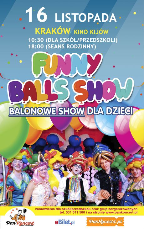 Agencja koncertowa „Pan Koncert” zaprasza na międzynarodowe widowisko dla dużych i małych „Funny Balls Show”, w którym spełniają się najpiękniejsze sny, a marzenia najmłodszych stają się rzeczywistością! Tu dzieją się rzeczy niezwykłe, tu radość nie schodzi z dziecięcych twarzy! Przybywajcie więc do magicznej Balonolandii i bawcie się z nami!