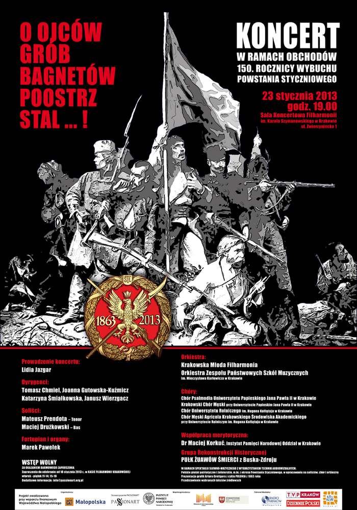 Oddział Instytutu Pamięci Narodowej w Krakowie, Marek Sowa Marszałek Województwa Małopolskiego oraz Stowarzyszenie Passionart zapraszajš na koncert z okazji 150 rocznicy wybuchu Powstania Styczniowego 1863-2013, pt.: O Ojców grób bagnetów poostrz stal!!,