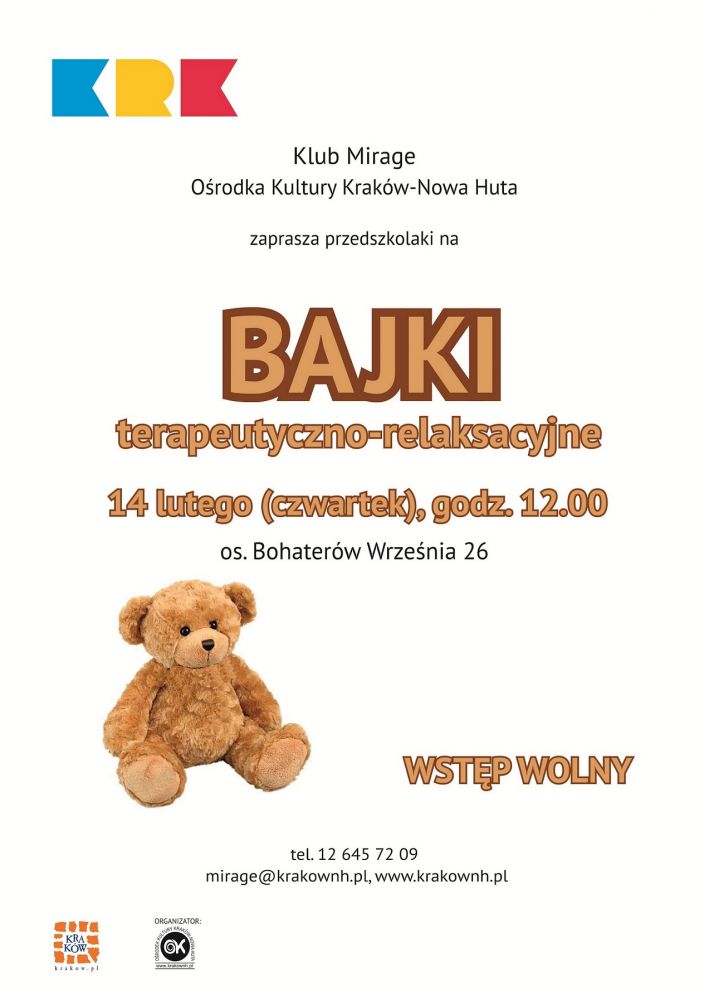 Klub Mirage Orodka Kultury Krakw-Nowa Huta (os. Bohaterw Wrzenia 26) zaprasza 14 lutego 2013 r. o godz. 12.00 na kolejne spotkanie z bajk.