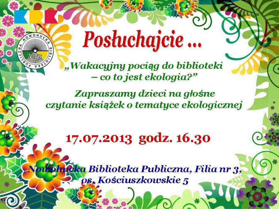 Co to jest ekologia? Jak dbać o Ziemię? Odpowiedzi na te i inne pytania poznacie w bibliotece. W cyklu: Głone czytanie na zaczarowanym dywanie odbędzie się głone czytanie dzieciom, w ramach projektu Edukacja ekologiczna: pt. W przyjani z naturš.