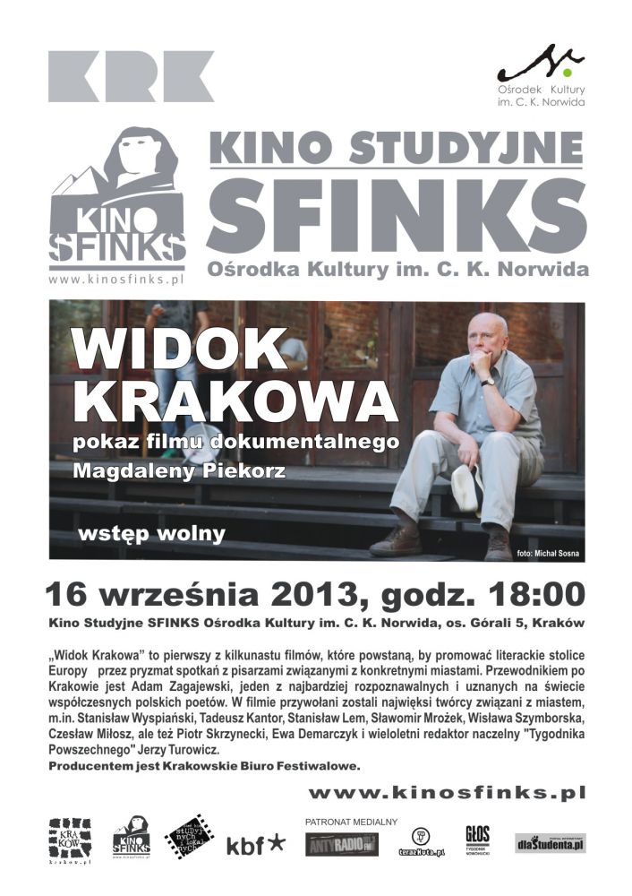 Widok Krakowa to pierwszy z kilkunastu filmów, które powstanš, by promować literackie stolice Europy przez pryzmat spotkań z pisarzami zwišzanymi z konkretnymi miastami. Przewodnikiem po Krakowie jest Adam Zagajewski, jeden z najbardziej rozpoznawalnych i uznanych na wiecie współczesnych polskich poetów. W filmie przywołani zostali najwięksi twórcy zwišzani z miastem m.in. Stanisław Wyspiański, Tadeusz Kantor, Stanisław Lem, Sławomir Mrożek, Wisława Szymborska, Czesław Miłosz, ale też Piotr Skrzynecki, Ewa Demarczyk i wieloletni redaktor naczelny "Tygodnika Powszechnego" Jerzy Turowicz.