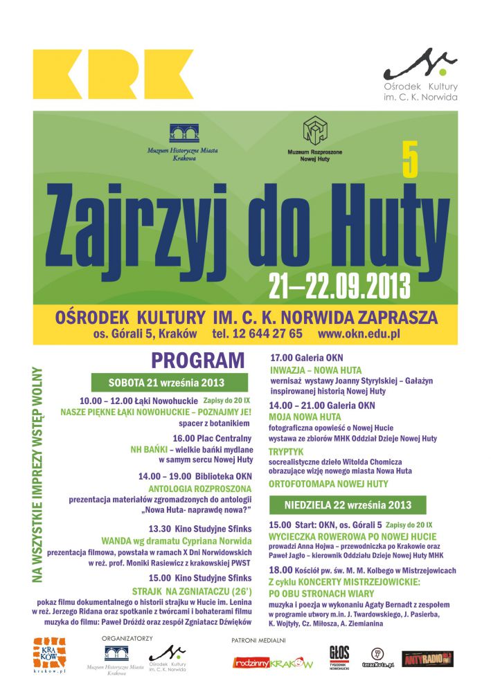 Muzeum Historyczne M. Krakowa i nowohuckie instytucje kultury zapraszajš do odwiedzenia Nowej Huty. Orodek Kultury im. Norwida przygotował swój "program nowohucki", na który serdecznie Państwa zaprasza. Wstęp wolny!