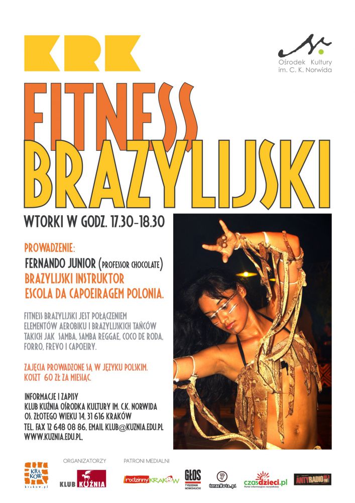 Fitness brazylijski jest połšczeniem elementów aerobiku i brazylijskich tańców takich jak: samba, samba reggae, coco de roda, forro, frevo i capoeiry. Trening rozpoczynajš ćwiczenia rozcišgajšco-rozgrzewajšce, przekształcajšce się póŸniej w krótkie układy taneczne, tworzone na bazie kroków tańców afro-brazylijskich, pozwalajšce spalić ogromne iloœci kalorii. Cały trening prowadzony jest przy tanecznej muzyce brazylijskiej. Fitness Brazylijski poprzez rytmikę, dynamikę i ekspresję pomaga nie tylko w pozbyciu się zbędnych kalorii, ucišżliwego cellulitu, ale także w utrzymaniu sprawnoœci i elastycznoœci ciała.
