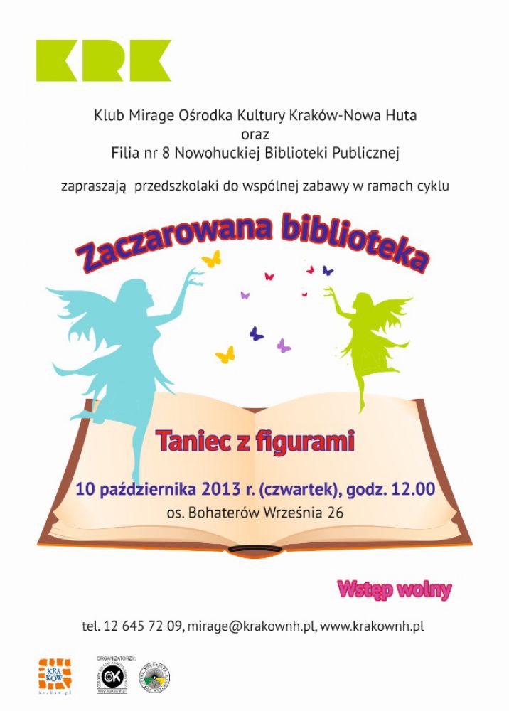 Klub Mirage Oœrodka Kultury Kraków-Nowa Huta (os. Bohaterów Wrzeœnia 26) zaprasza na zajęcia edukacyjno-relaksacyjne dla przedszkolaków z cyklu Zaczarowana biblioteka, które odbędš się 10 paŸdziernika o godz. 12.00.