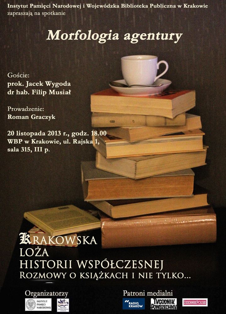 Po wakacyjnej przerwie ruszyła nowa seria spotkań w Krakowskiej Loży Historii Współczesnej. Instytut Pamięci Narodowej oraz Wojewódzka Biblioteka Publiczna w Krakowie zapraszajš na drugš dyskusję Morfologia agentury. W rozmowie wezmš udział dr hab. Filip Musiał oraz prok. Jacek Wygoda. Spotkanie poprowadzi Roman Graczyk.