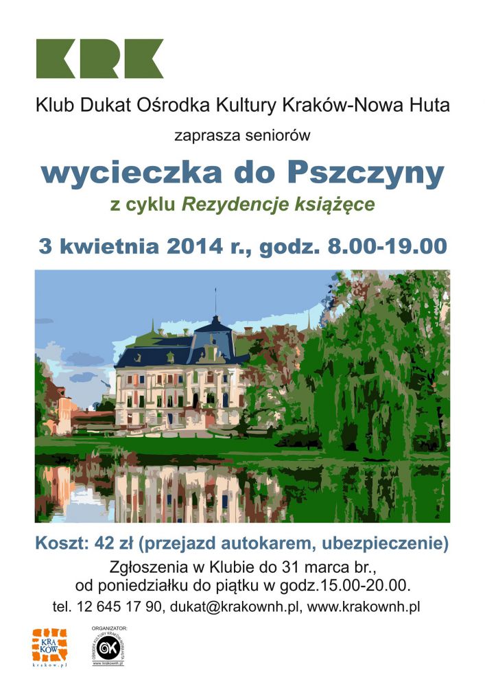 3 kwietnia godz. 8.00 - wycieczka dla seniorw w ramach cyklu Rezydencje ksice organizowana przez Klub Dukat Orodka Kultury Krakw-Nowa Huta (ul. Styczna 1).