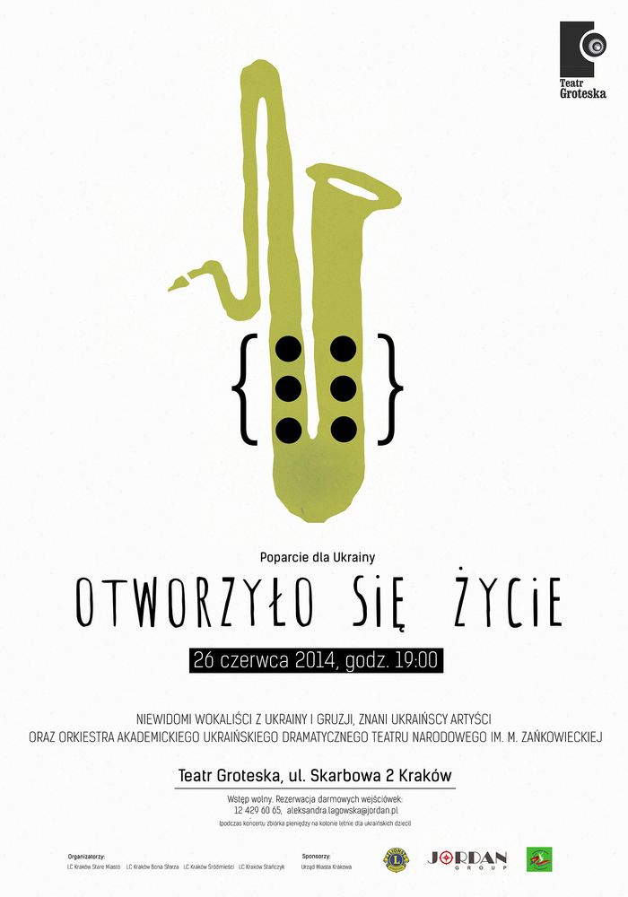 26 czerwca 2014 r.o godzinie 19:00 w Teatrze Groteska odbędzie się unikalny koncert „Otworzyło się życie” w wykonaniu niewidomych wokalistów z Ukrainy i orkiestry Teatru Narodowego im. M. Zańkowieckiej.