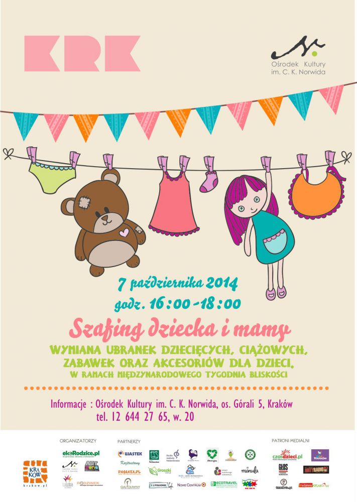 7 paŸdziernika o godz. 16.00 w Oœrodku Kultury im. C.K. Norwida na os. Górali 5 odbędzie się SZAFING DZIECKA I MAMY, czyli dziecięca wersja wymiany ubrań i akcesoriów.