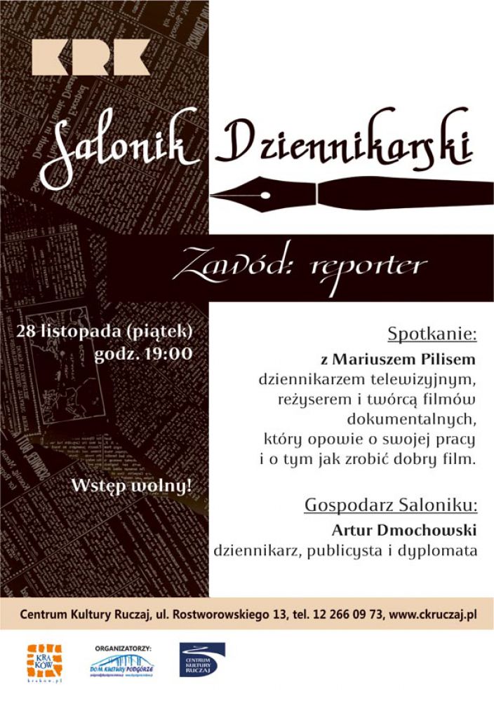 Centrum Kultury "Ruczaj" zaprasza na kolejne spotkanie w ramach cyklu Salonik Dziennikarski.