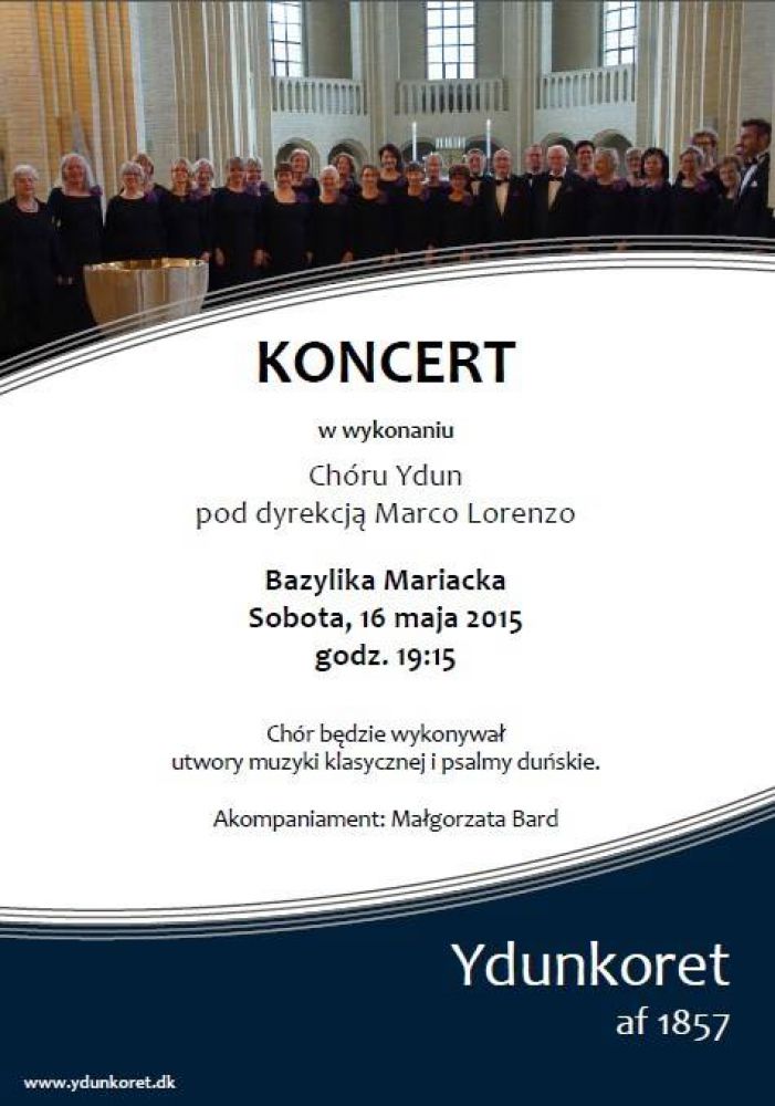 Koncert odbdzie si w Bazylice Mariackiej, 16 maja 2015 roku, o godzinie 19.15 po mszy wieczornej.