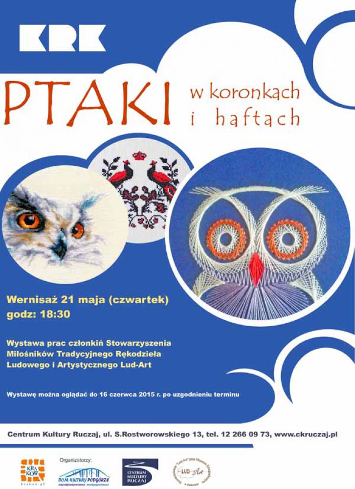 Wystawa "Ptaki w koronkach i haftach" będzie 90-tš wystawš prac członkiń Lud-Artu i wypada w 10-ty, jubileuszowy rok istnienia Stowarzyszenia.