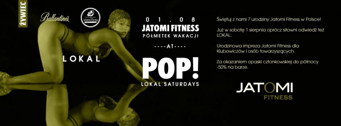 Pure Jatomi Fitness wraz z klubem LOKAL œwiętuje półmetek lata w rytmie muzyki pop. Jeœli marzysz o œwietnej zabawie w towarzystwie ludzi kochajšcych sport, nie może Cie zabraknšć. Mamy dla Was mnóstwo gadżetów, nagród i wiele niespodzianek, które możecie zdobyć poprzez uczestnictwo w sobotniej imprezie.