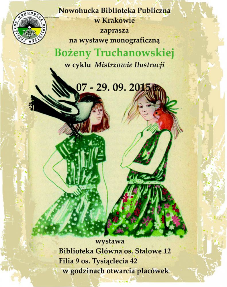 Nowohucka Biblioteka Publiczna w Krakowie zaprasza na wystawę monograficznš Bożeny Truchanowskiej w cyklu Mistrzowie Ilustracji. Wystawa towarzyszyła XIV edycji Poznańskich Spotkań Targowych – Ksišżka dla Dzieci i Młodzieży, współorganizowanym przez Polskie Towarzystwo Wydawców Ksišżek, Międzynarodowe Targi Poznańskie i Centrum Kultury Zamek w Poznaniu. Wystawa jest współfinansowana przez Samorzšd Województwa Wielkopolskiego.