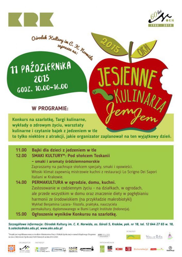 Oœrodek Kultury im C. K. Norwida zaprasza na Jesienne kulinaria Jem Jem, które odbędš się w niedzielę 11 paŸdziernika 2015 roku w godzinach od 10.00 do 16.00 na os. Górali 5 w Krakowie.